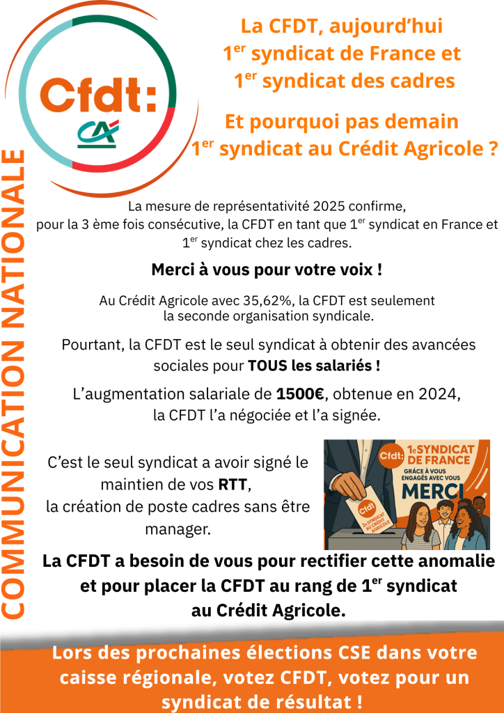 2. La CFDT est le premier syndicat de France, secteurs privé et public confondus (en nombre de voix aux élections professionnelles). Elle est 1e dans le privé depuis 2017 et 2e dans la fonction publique. Elle représente ainsi 26,77% d’audience syndicale.