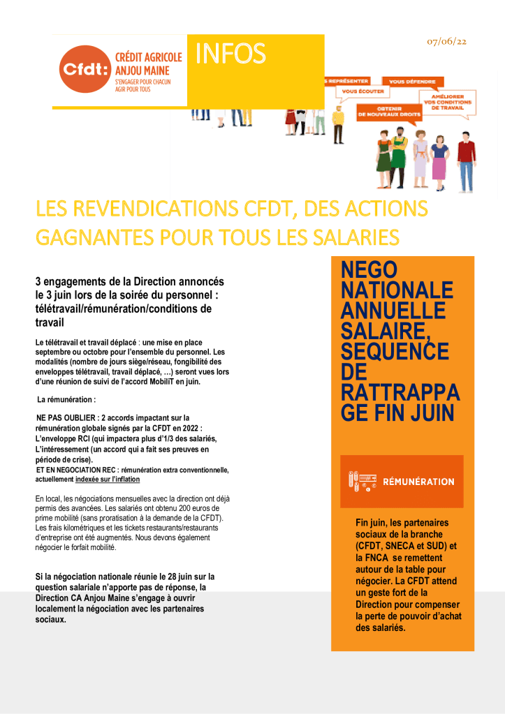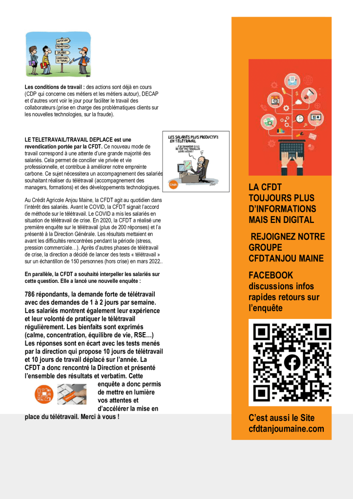 vous voulez connaître le travail que l’équipe CFDT fait dans notre entreprise sur des éléments qui vous concernent (rémunération, conditions de travail, accords d’entreprise en négociation avec l’employeurs, comité social économique…)